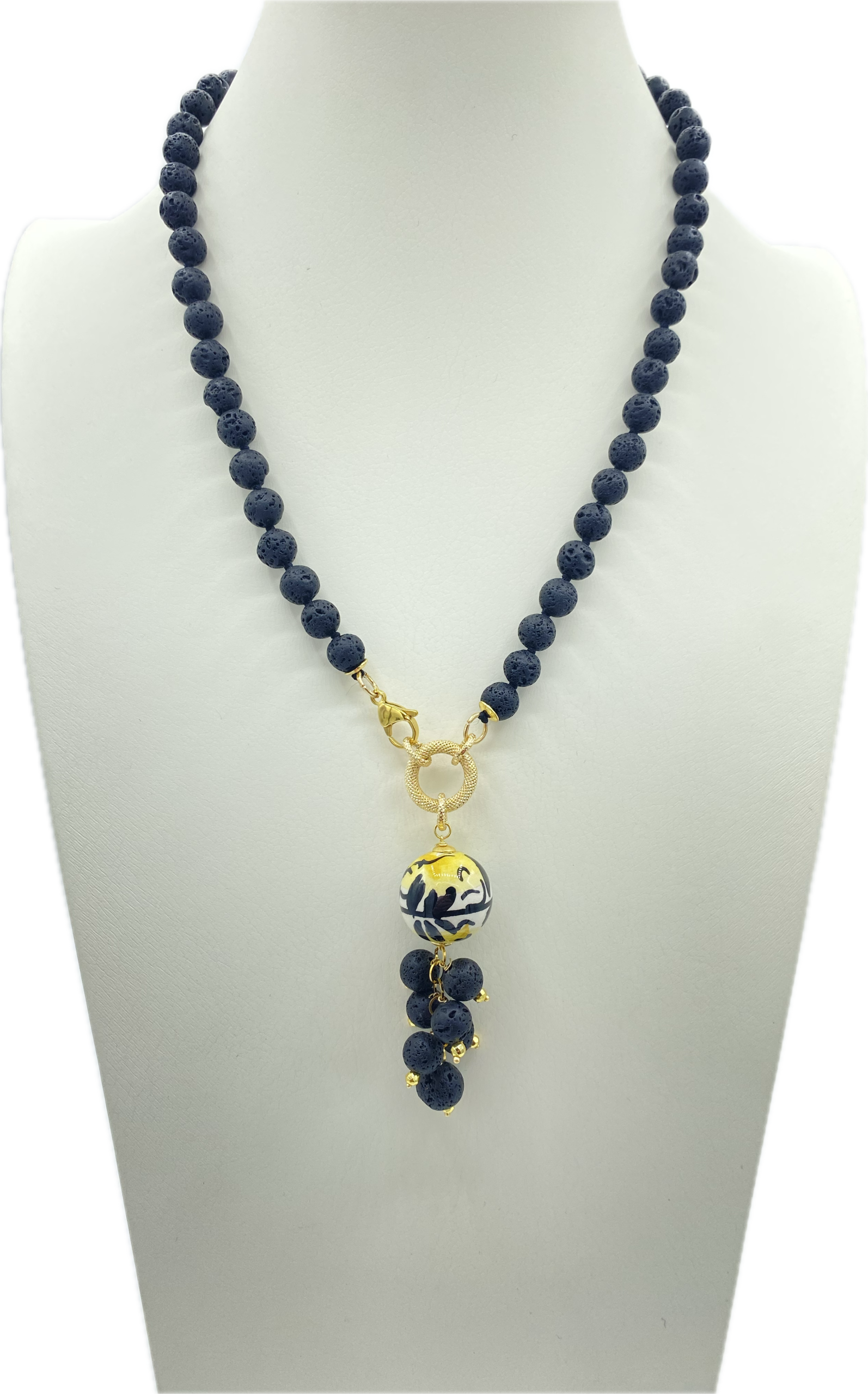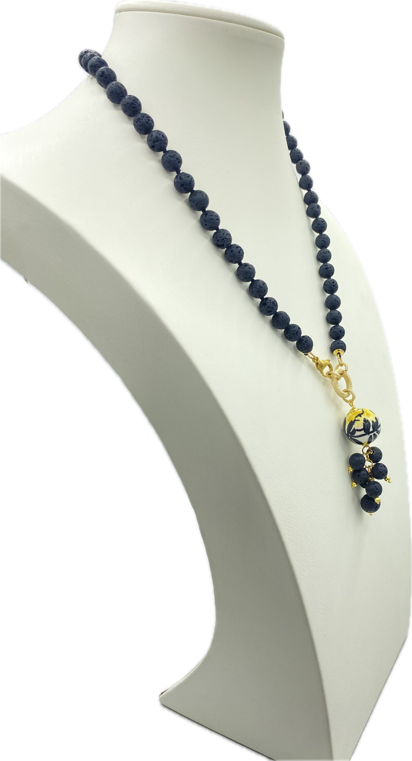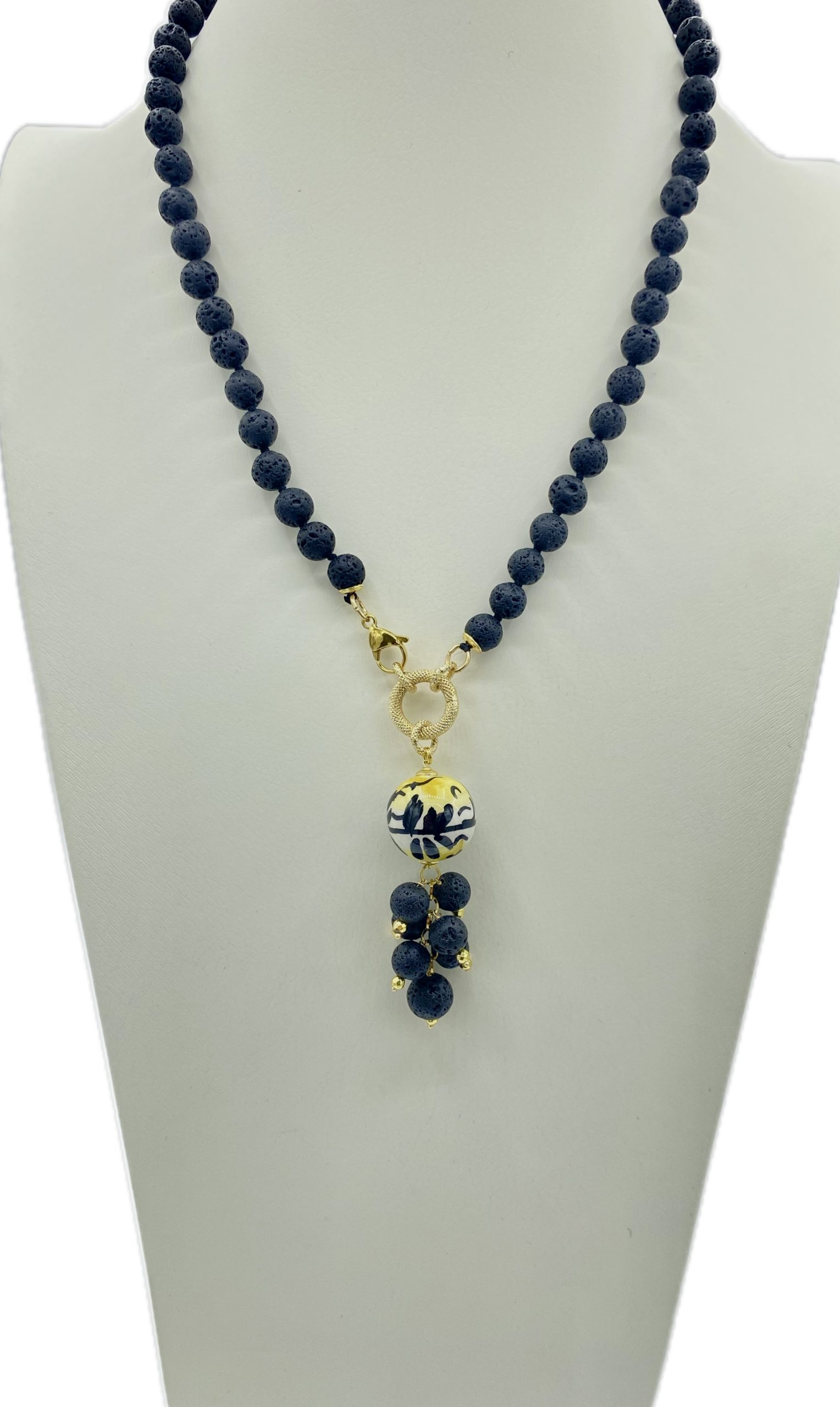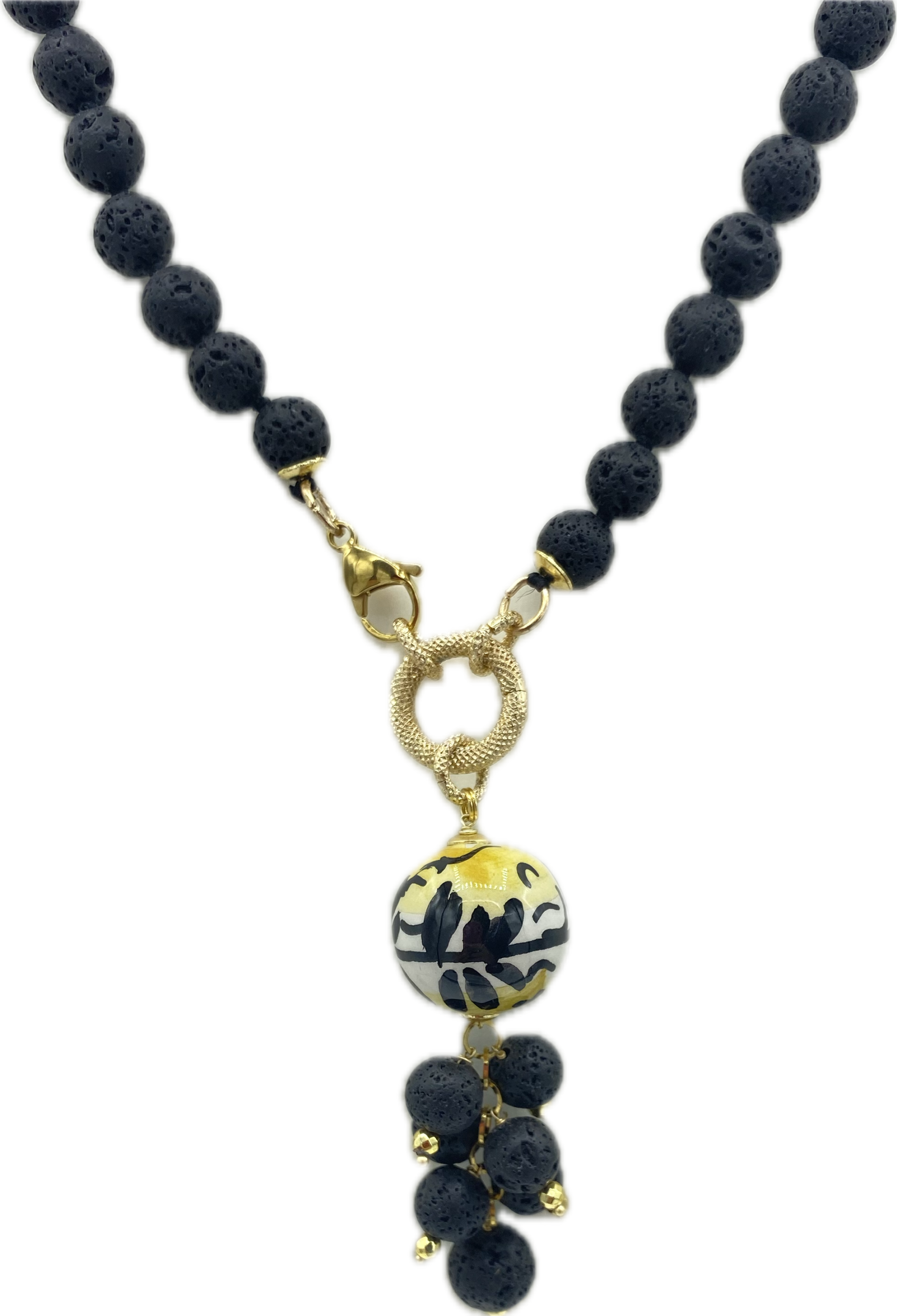 βœ¨πŸŒ‹ Collana in Pietra Lavica dell’Etna con Perla in Ceramica Dipinta a Mano 🎨✨