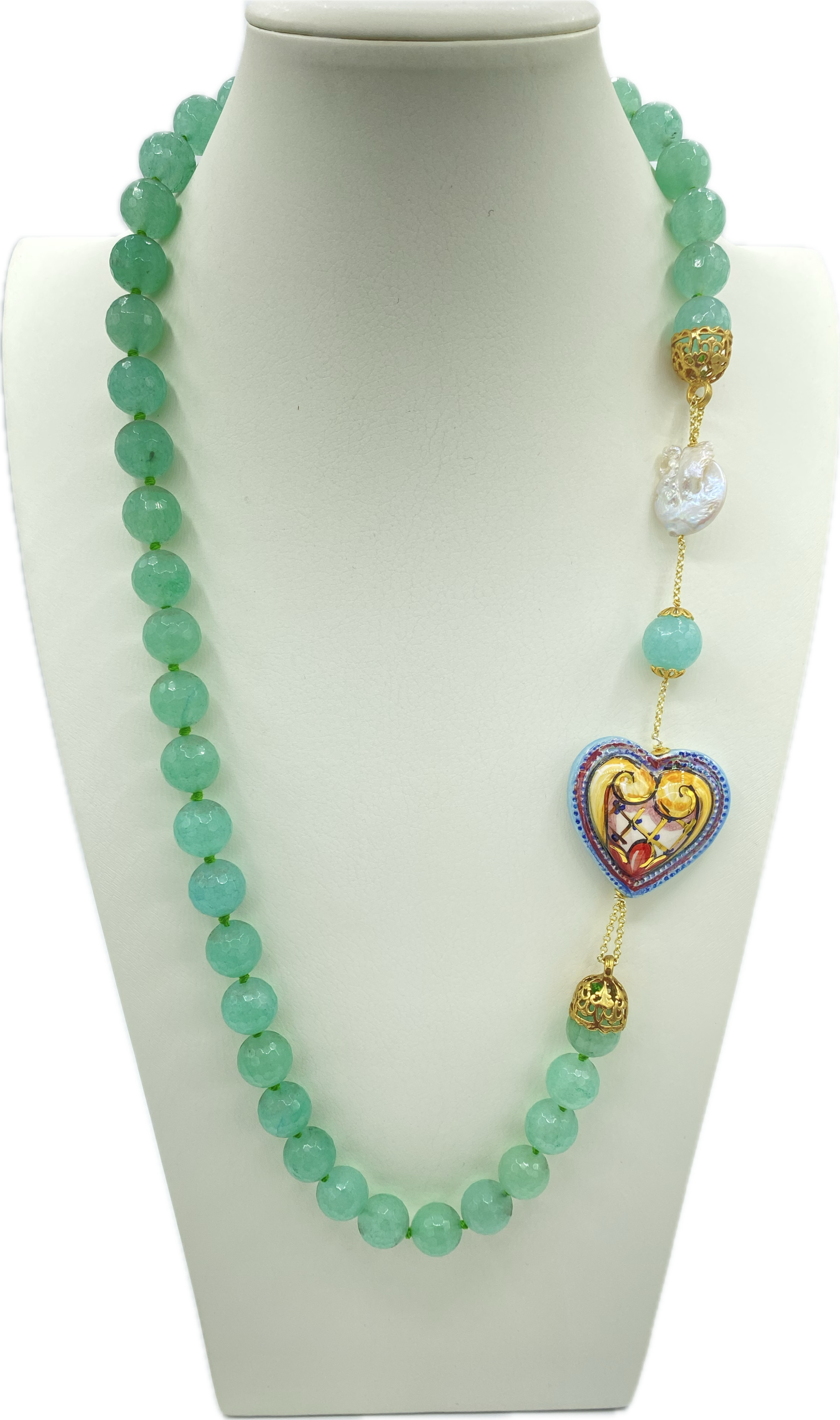 Γ arricchita da una brillante madreperla che illumina il design e da un cuore in ceramica dipinta a mano, decorato con rifiniture in lustro in oro e sfumature con lustro madreperlato.