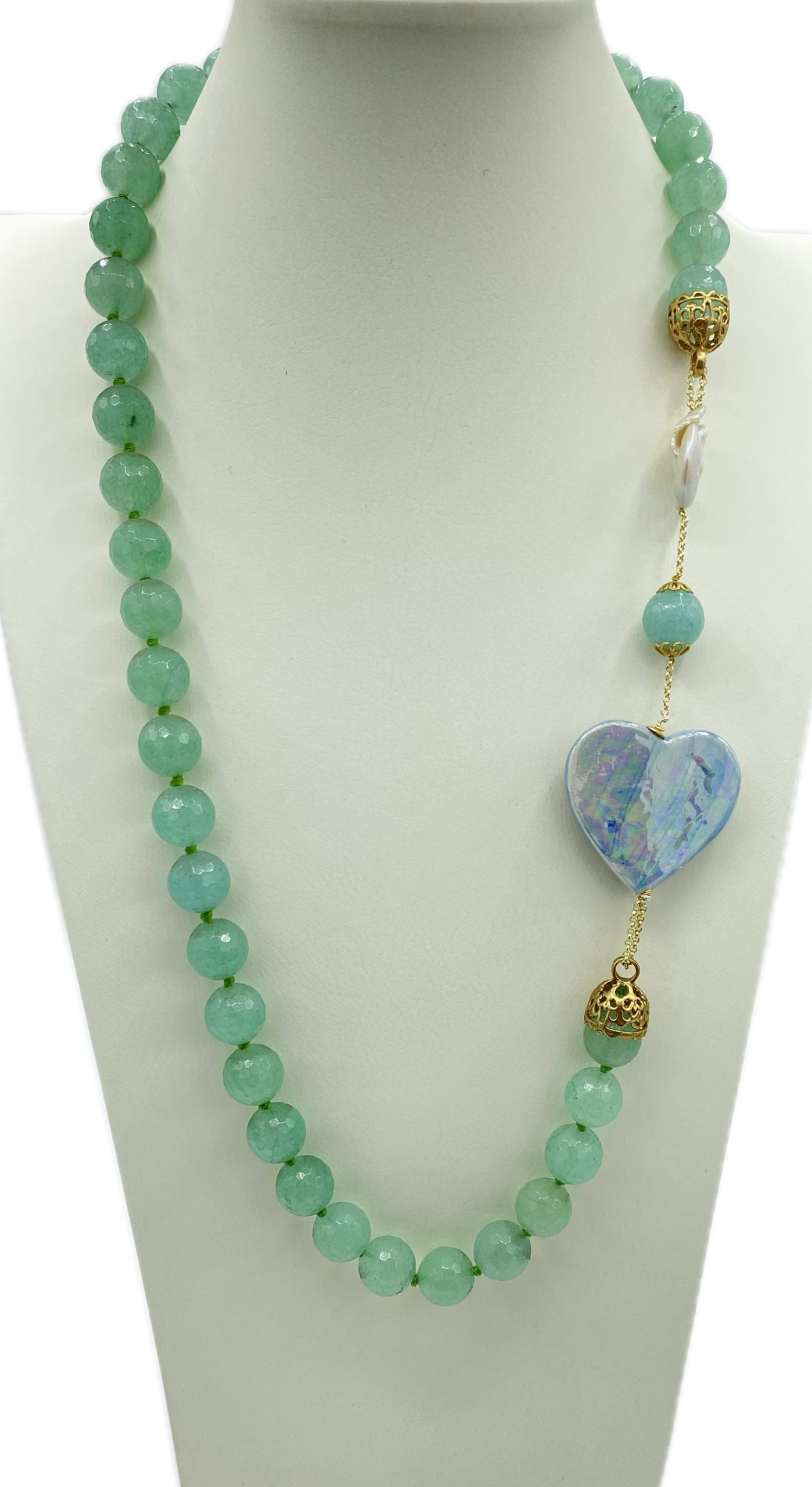 Questa collana Γ¨ realizzata con pietre di giada naturale, scelte per la loro energia positiva e la loro bellezza avvolgente.