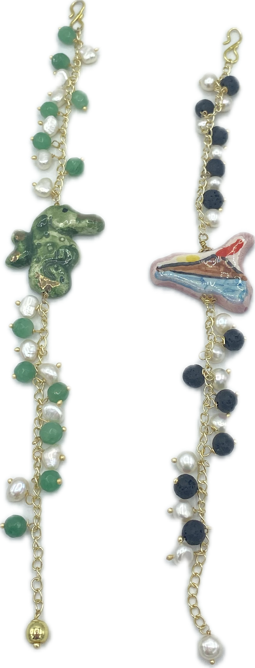 Un tributo alla forza della natura siciliana, questo bracciale abbina perle di fiume e pietra lavica dellโEtna, simbolo di energia e radici profonde. Il tocco distintivo? Una splendida Sicilia in ceramica, per portare sempre con te lโanima dellโisola.