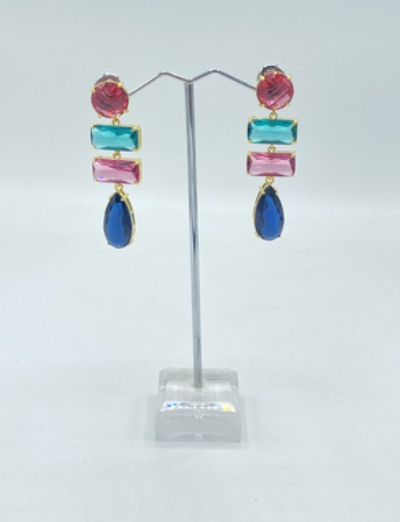 Eleganti e colorati orecchini con cristalli sfaccettati di vari colori, incastonati in una struttura in ottone, gli orecchini sono caratterizzati da una chiusura a farfalla che non solo garantisce una vestibilità sicura e confortevole, ma aggiunge un tocco di raffinatezza.