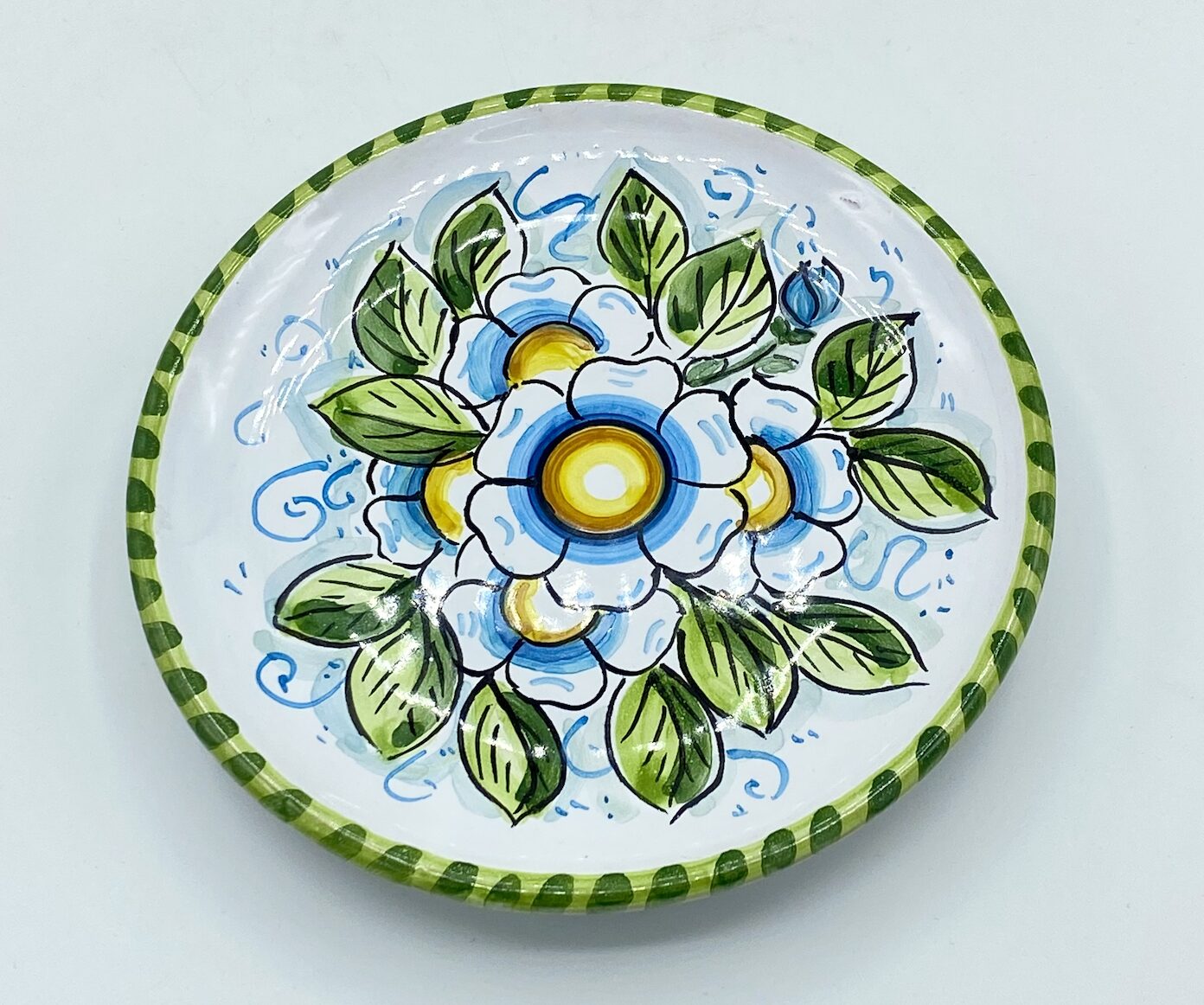 Splendido piatto in ceramica dipinto a mano con un delicato motivo floreale, che aggiunge un tocco di eleganza e colore .